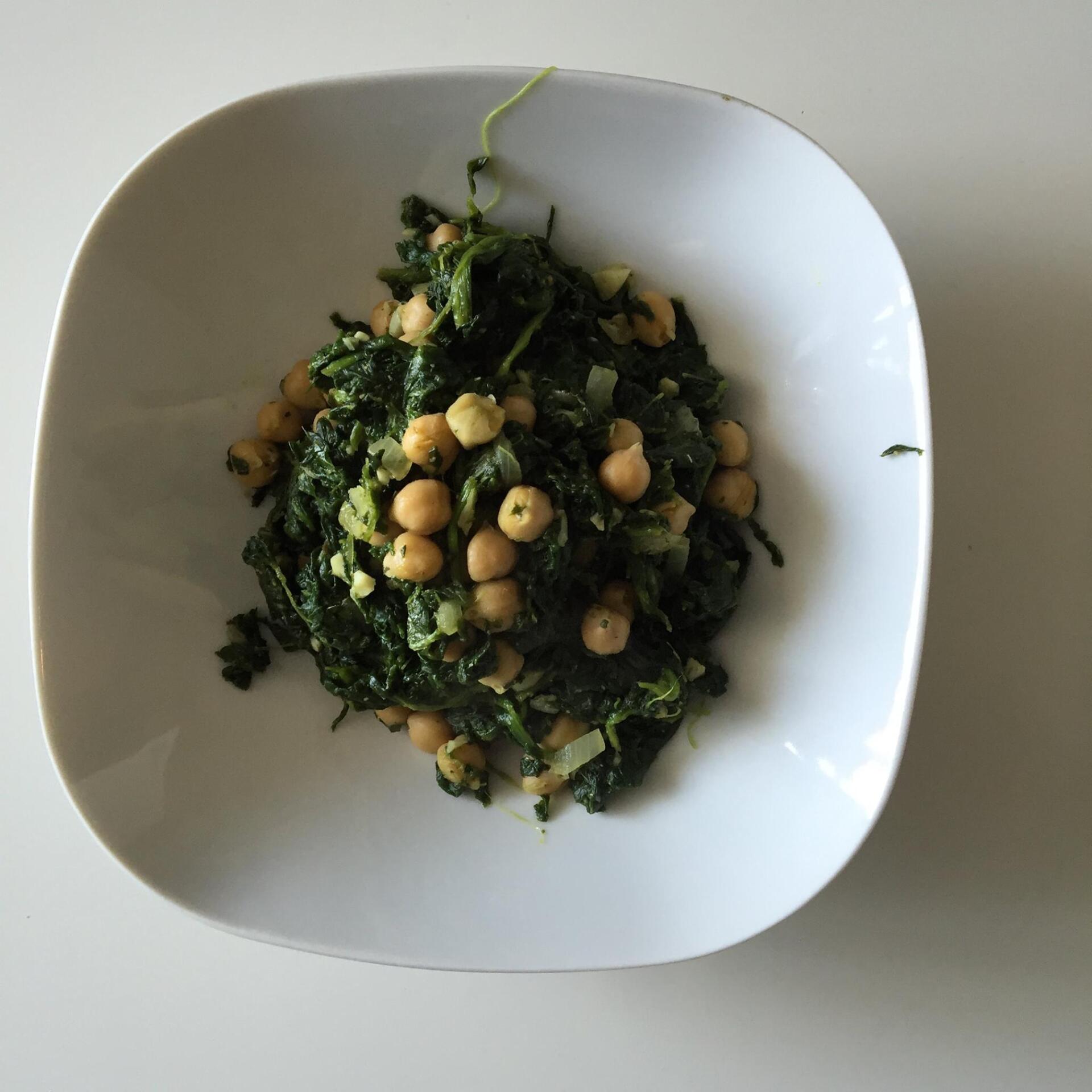 J'ai choisi de vous présenter cette recette aujourd'hui car elle fait partie d'une de mes "tapas" préférée. De plus, elle peut convenir parfaitement aux végétariens. En ajoutant de l'oeuf et 1 tranche de pain grillé cela en fait un plat complet. En Espagne l'huile d'olive coule à flot... Je vous présente donc ma version revisitée en version allégée! Préparation: 5 minutes - Cuisson: 15 minutes - Difficulté: facile Coût: bon marché INGREDIENTS (pour 4 personnes): - 500g d'épinards (frais ou congelés en branches (pas hachés ou à la crème!) - 200 g de pois-chiche (pensez à les mettre à la trempe la veille ou alors opter pour la boite de conserve) - 1 ail - 1 CàS de cumin en poudre (c'est ce qui donne ce goût si particulier à cette tapa) - 1 CàS de paprika en poudre - 4 CàS d'huile d'olive - 1/2 verre d'eau - sel, poivre PRÉPARATION: Dans un poêle, faites chauffer l'huile d'olive et y faire revenir l'ail à feu moyen Versez-y les épinards et les épices et l'eau. Remuez. Laissez cuire à feu doux pendant 5 minutes Versez les pois-chiche et laissez cuire à feu doux pendant 5 minutes. PRÉSENTATION: Servir avec un oeuf poché/dur sur le dessus et une tranche de pain grillé (complet 😉 ) Ça sent le soleil! Régalez-vous!